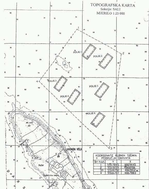 Kali tuna je prije nešto više od četiri godine dobila koncesiju na šest uzgajališta podjednake veličine kod otoka Lavdare u blizini Sali. U to se vrijeme naveliko najavljivalo da će to biti područje na kojem se tune “proizvode” iz epruvete do konzumne veličine, a tek usput iz za uzgoj ulovljene tune.