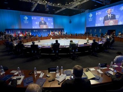 Članice G8 – SAD, Kanada, Japan, Rusija, Njemačka, Britanija, Francuska i Italija, sve su članice G20 u koji su još uključene EU, Meksiko, Brazil, Argentina, JAR, Turska, Indija, Kina, Indonezija, Južna Koreja, Saudijska Arabija i Australija.