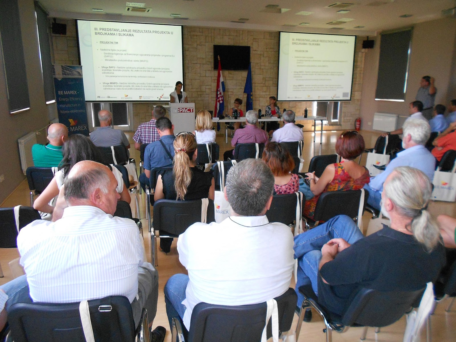 Jedan od rijetkih primjera uspješnog korištenja sredstava iz pretpristupnih fondova u privatnom sektoru prezentiran je u ponedjeljak, 11. kolovoza 2014., u IMPACT centru d.o.o. u Zadru gdje je održana završna konferencija projekta “EE MAREX – Energy Efficiency manufacture in Marex-elektrostroj” tvrtke Marex-elektrostroj d.o.o. Zadar.
