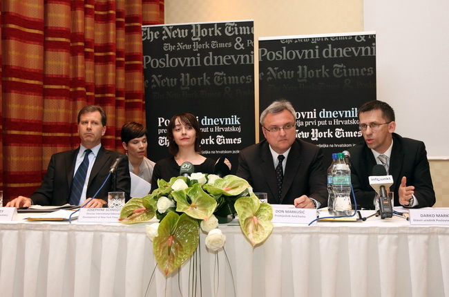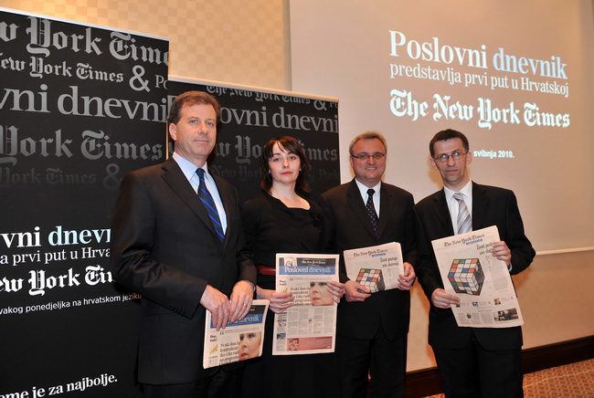 Zagreb, 10. svibnja 2010. – Danas je u hotelu The Regent Esplanade pred brojnim uzvanicima i predstavnicima medija, svečano predstavljen zajednički projekt The New York Timesa i Poslovnog dnevnika.