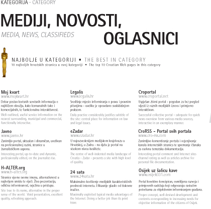 U prosincu 2008. eZadar.hr je dobio također veliko priznanje ušavši među 10 najboljih hrvatskih internetskih portala u kategoriji Mediji, Novosti i Oglasnici u izboru VIDI WEB Top 100 2008.