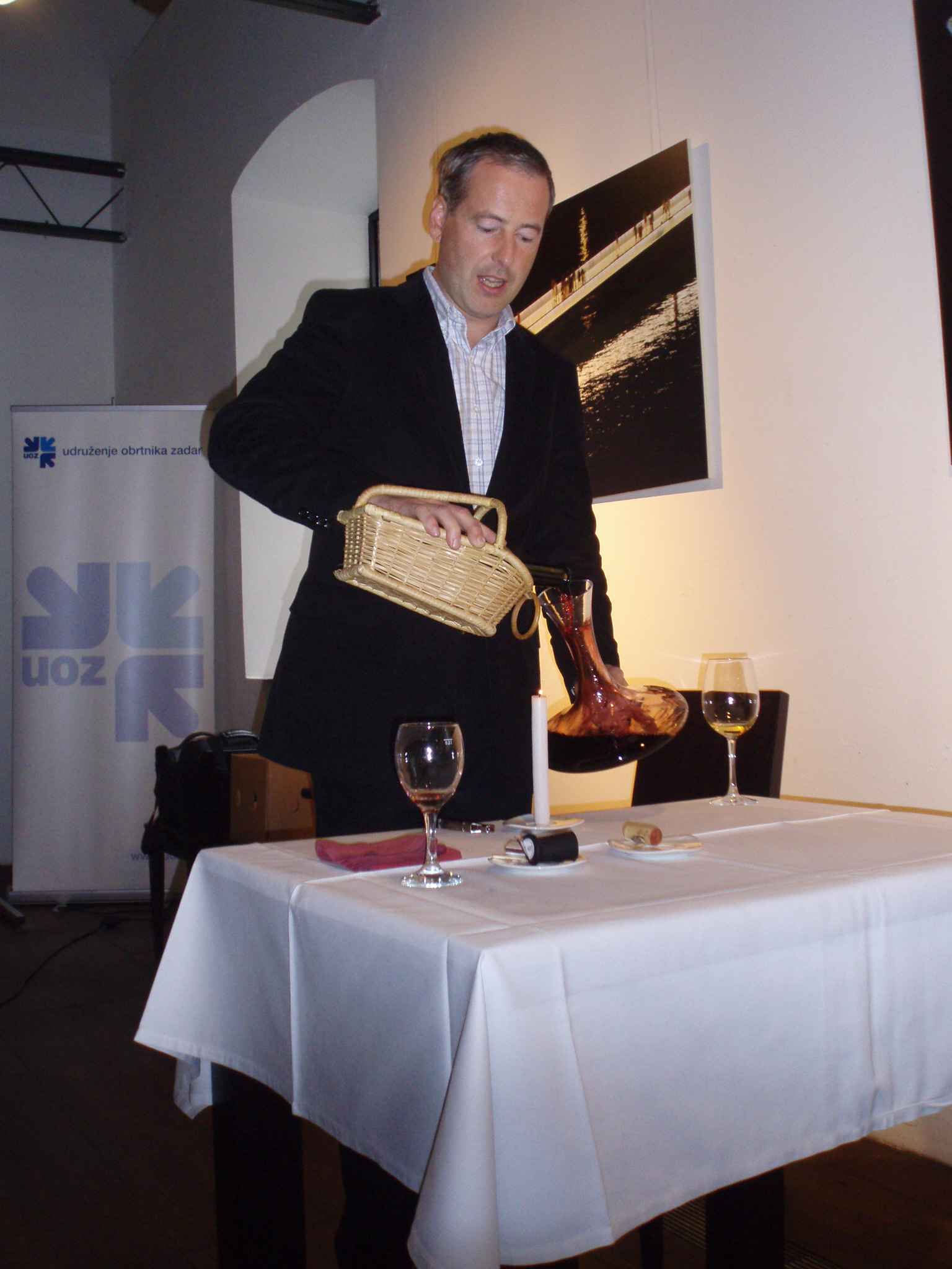 Prvi dio predavanja je bio o sommelierstvu općenito, razvoju te discipline, mogućnostima obrazovanja i slično. Sommelier nije samo osoba koja kuša vina već brine o cijelom procesu predstavljanja, preporučivanja, posluživanja i točenja vina.