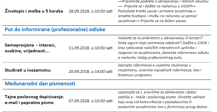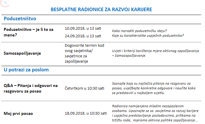 Prvi korak možete napraviti u CISOK-u te iskoristiti besplatne radionice za razvoj karijere ili usluge individualnog savjetovanja koje nudi.