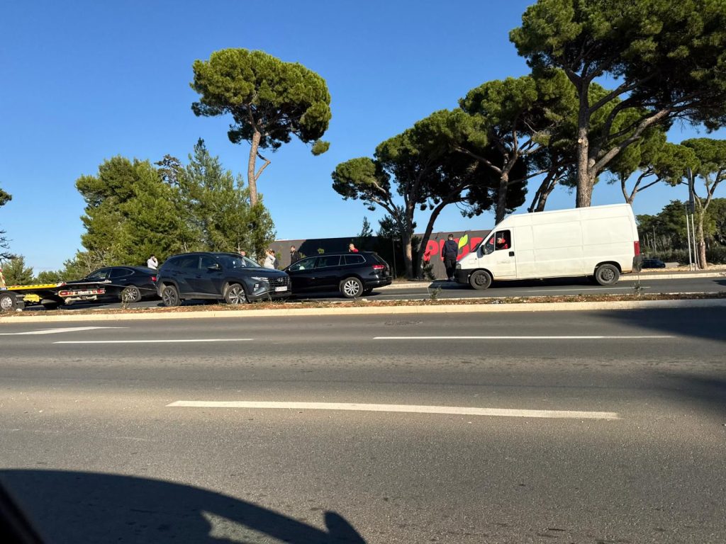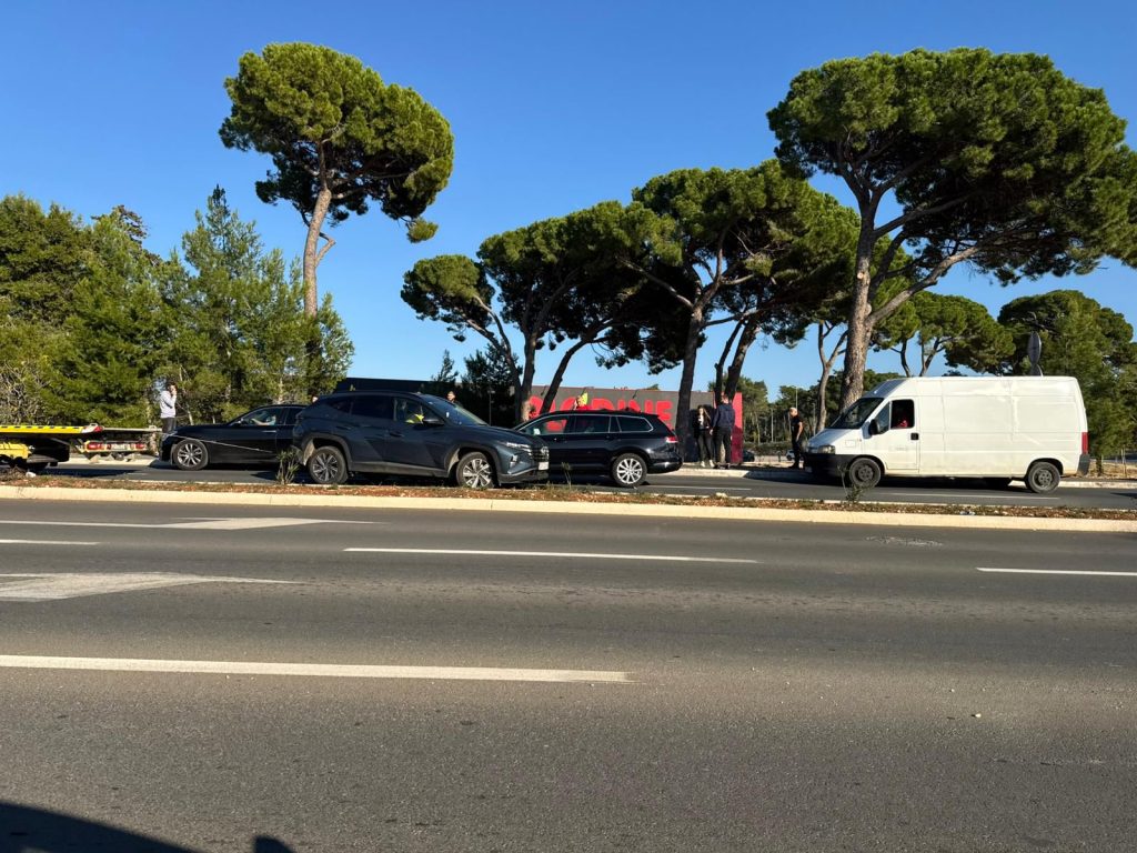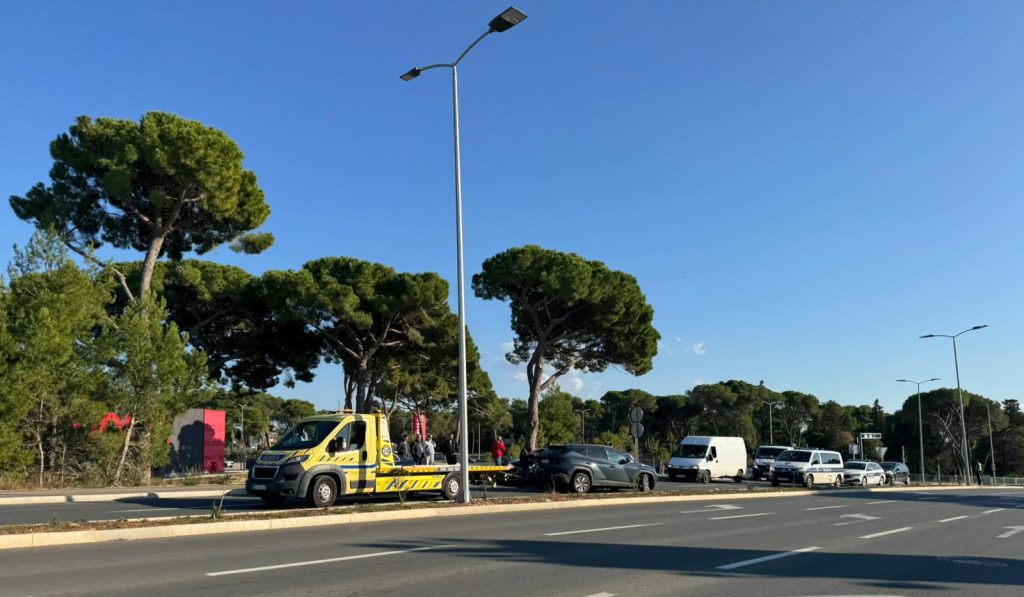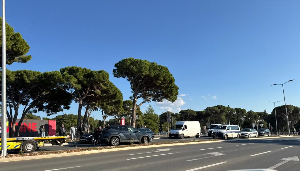 Na terenu su policija i vozilo za pomoć na cesti. Očevid je u tijeku. Promet se odvija pod regulacijom policije.