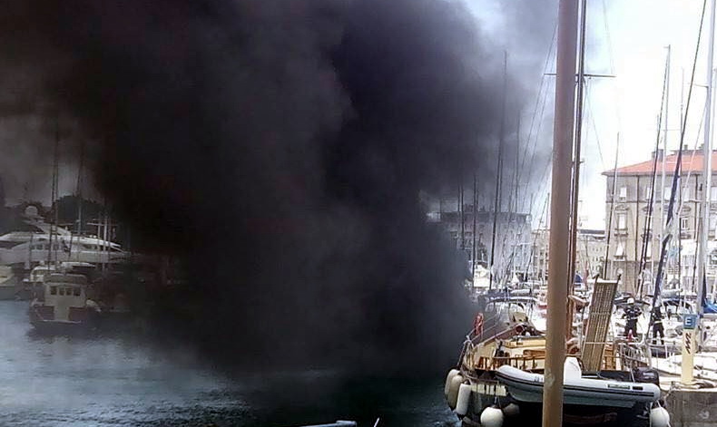 Nešto malo prije 13 sati nad zadarskom marinom “Tankerkomerc” nadvio se gusti, crni dim kao posljedica požara do kojeg je došlo na jednom od brodova privezanih na ponton blizu bivše kockarnice.