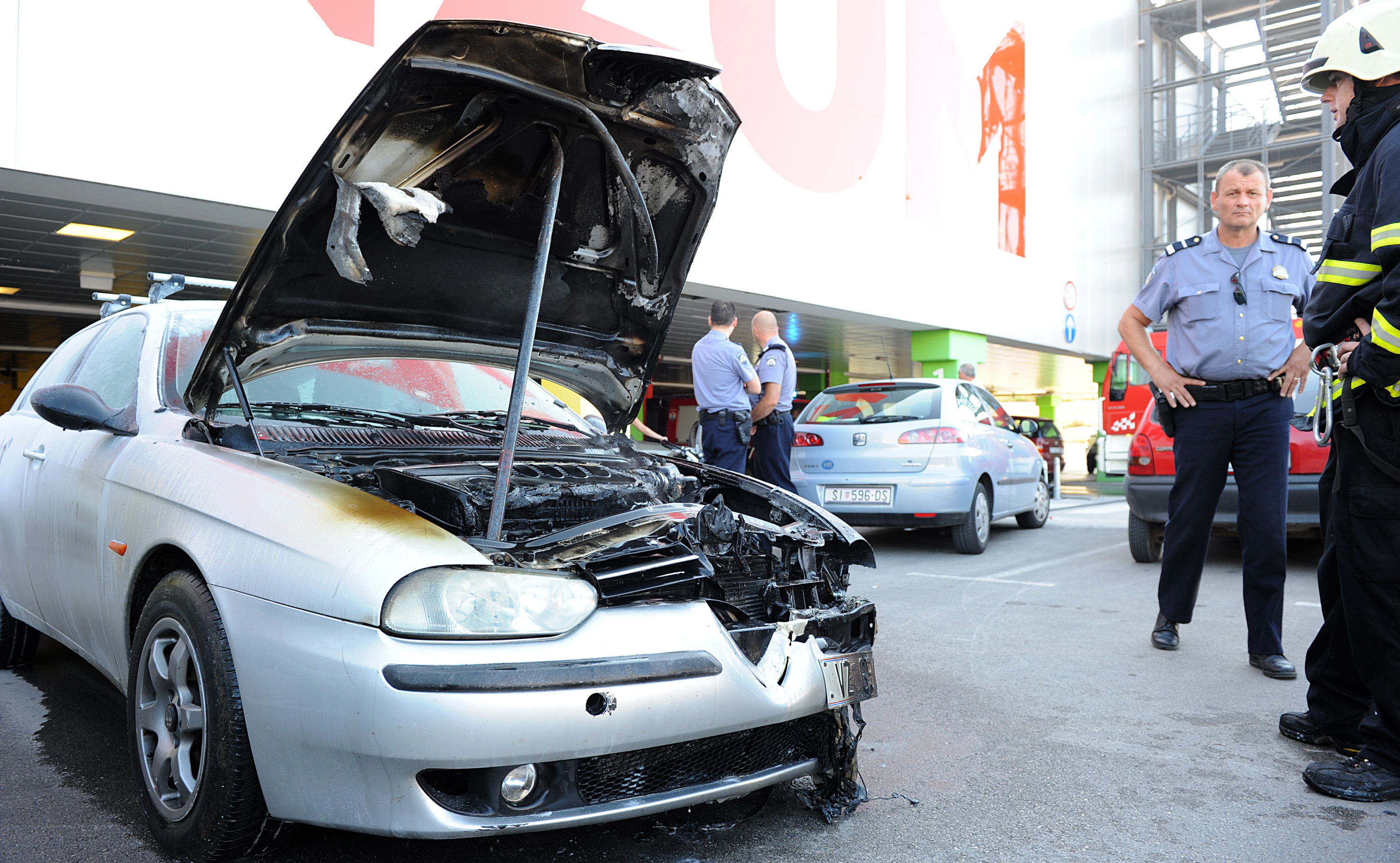 Jutros oko 8.30 sati na parkiralištu Konzumovog trgovačkog centra kod Autobusnog kolodvora zapalio se automobil Alfa Romeo varaždinskih registracijskih oznaka.