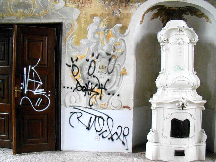 Za zaštitu od uljeza, koji su u dvorcu razbijali i palili vatru, daskama su zatvoreni ulazi, no to nije spriječilo najnovije uništavanje vrijednih umjetnina.