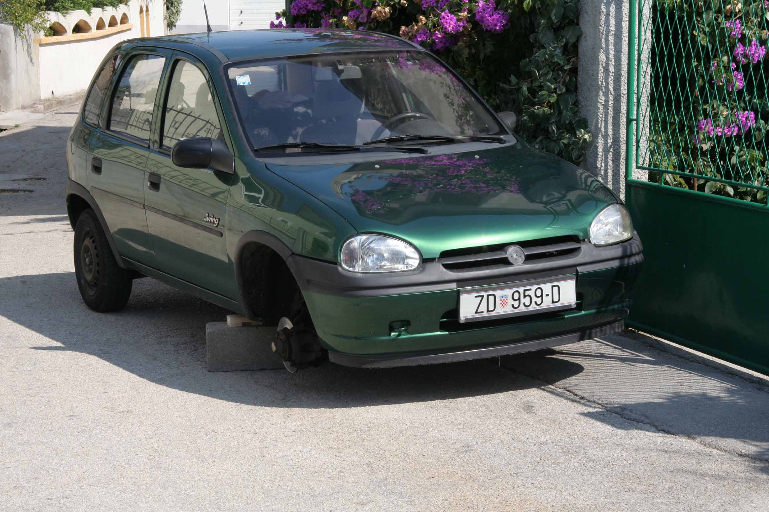 Kotlar je s Opel Corse u znak revolta skinuo prednje gume/Foto: Telefoto