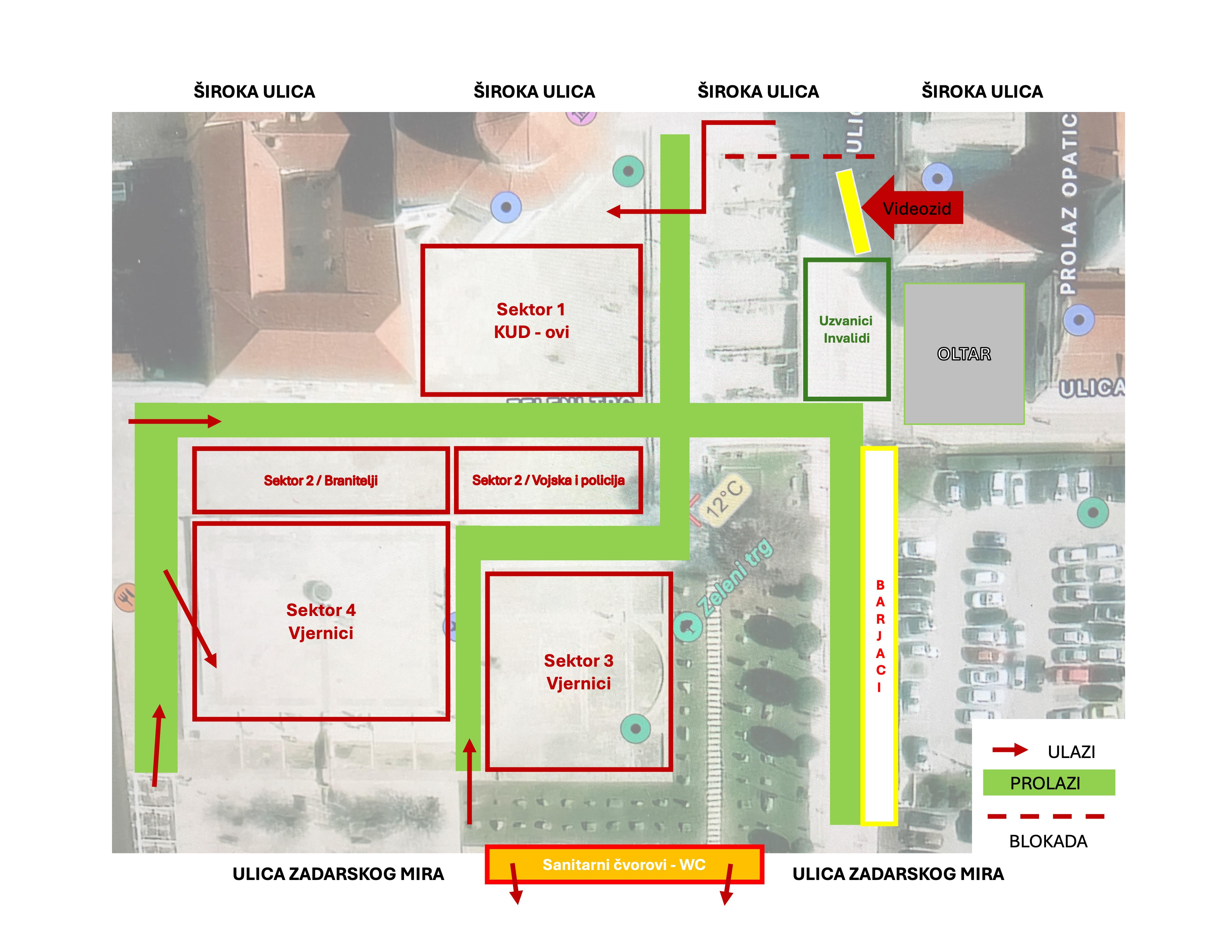 Vjernicima se preporuča da počnu dolaziti već od 15 sati, da se ravnomjerno rasporedi ulazak kroz glavne prolaze, da se izbjegnu kasnije gužve i čekanje u redovima.