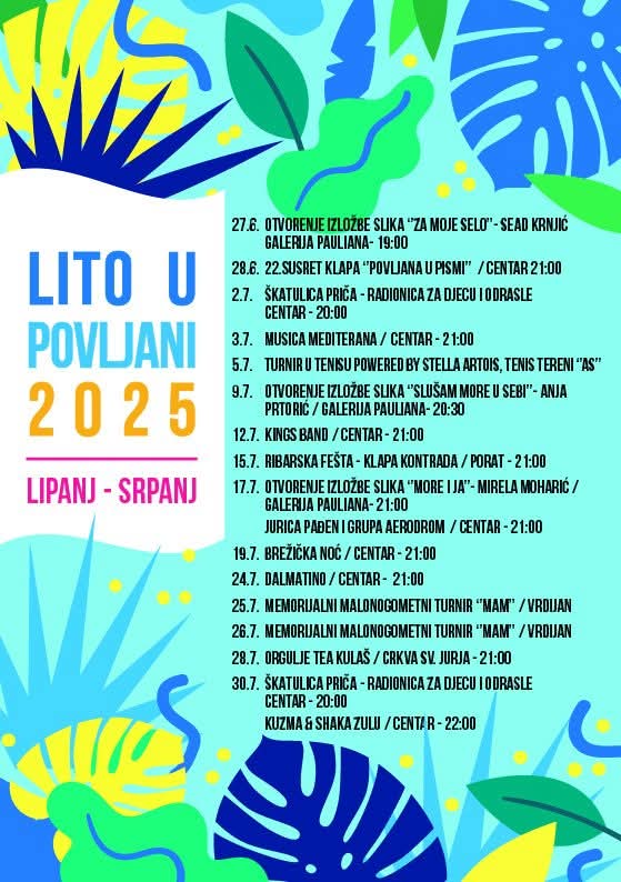 Tradicionalna manifestacija “Lito u Povljani 2025.” donosi više od 30 raznovrsnih događanja za sve generacije – od koncerata i izložbi do dječjih radionica, sportskih turnira i omiljenih ribarskih fešti.