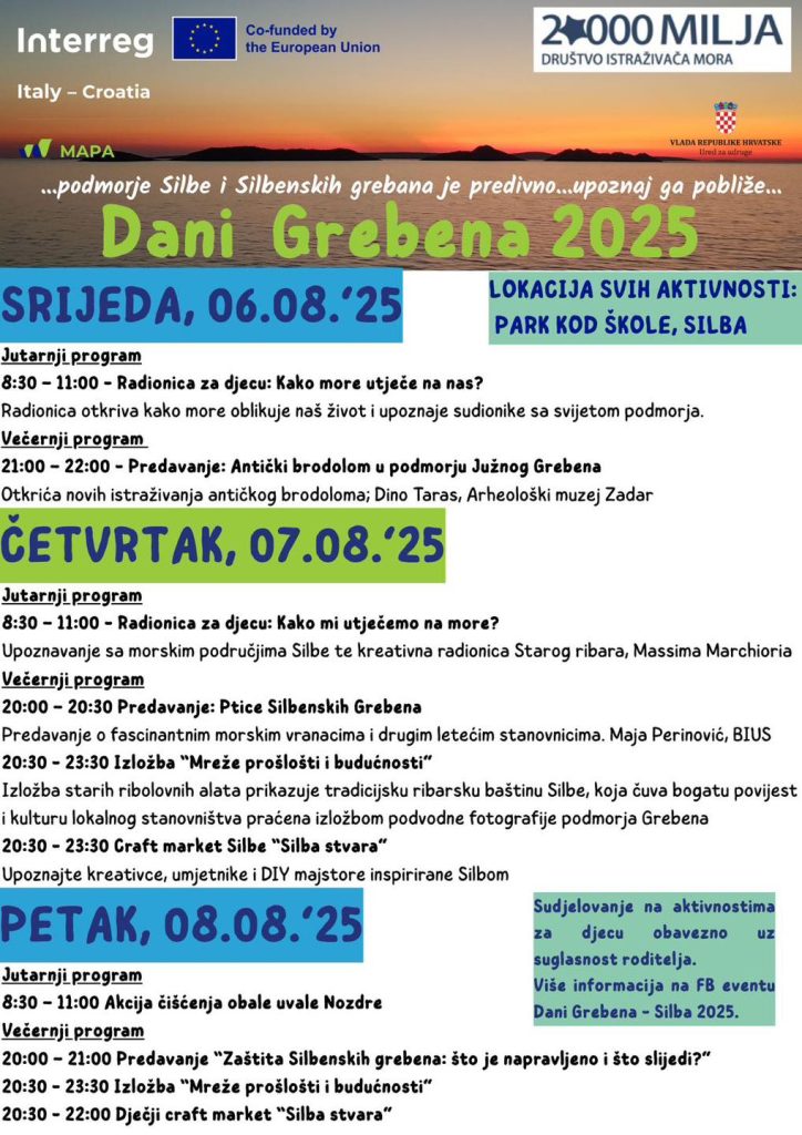 Ovogodišnje izdanje održat će se od 6. do 8. kolovoza 2025. godine u parku kod škole na Silbi, a program je posvećen ljepoti, zaštiti i tradiciji Silbenskih grebena i mora oko Silbe.