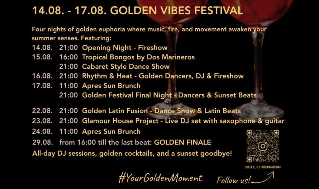 Od 14. do 17. kolovoza u Golden Restaurantu Baru Hotela Pinije u Petrčanima sprema se pravi spektakl: Golden Vibes Festival!