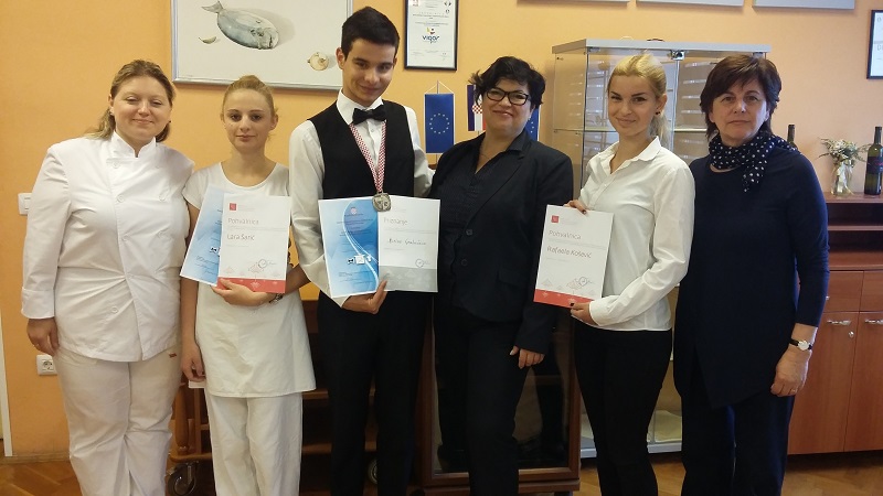 Zadarsku su školu predstavljali učenici u tri kategorije: Marin Grubešić iz 3.f u posluživanju menija (mentorica Zvjezdana Magaš), Lara Šarić iz 4.g u pripremi hladnog slatkog izloška (mentorica Kristina Lončar) i Rafaela Košević iz 4.c u recepcijskom poslovanju (mentorica Dijana Capić).
