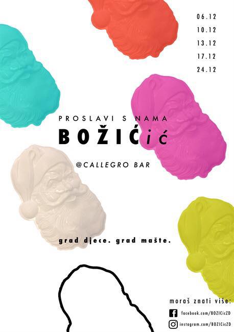 Nastupom sveučilišne a capella grupe A.K.A. Crescendo u utorak 6. prosinca započinje animacijski program druženja sa Svetim Nikolom i vilenjacima u caffe baru Callegro u sklopu novog i nadasve neobičnog projekta “BOŽIĆić”.