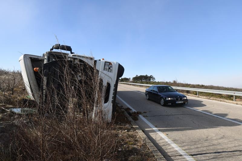 Autocesta je zatvorena autocesta ali nitko ne garantira da se može probiti cestom preko Obrovca. Kamion koji je vozač ostavio uz cestu u tome nije uspio.