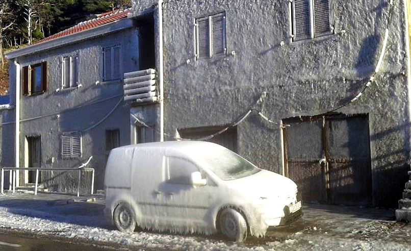 Dalmacija je okovana ledom. Po osjetu hladnoće na Jadranu je hladnije nego na kopnu. Iako u zraku -5, osjet temperature je -20. Uz buru koja je prelazila 200 kilometara na sat, novinarske ekipe RTL-a uspjele su zabilježiti kaos koji vlada uz obalu