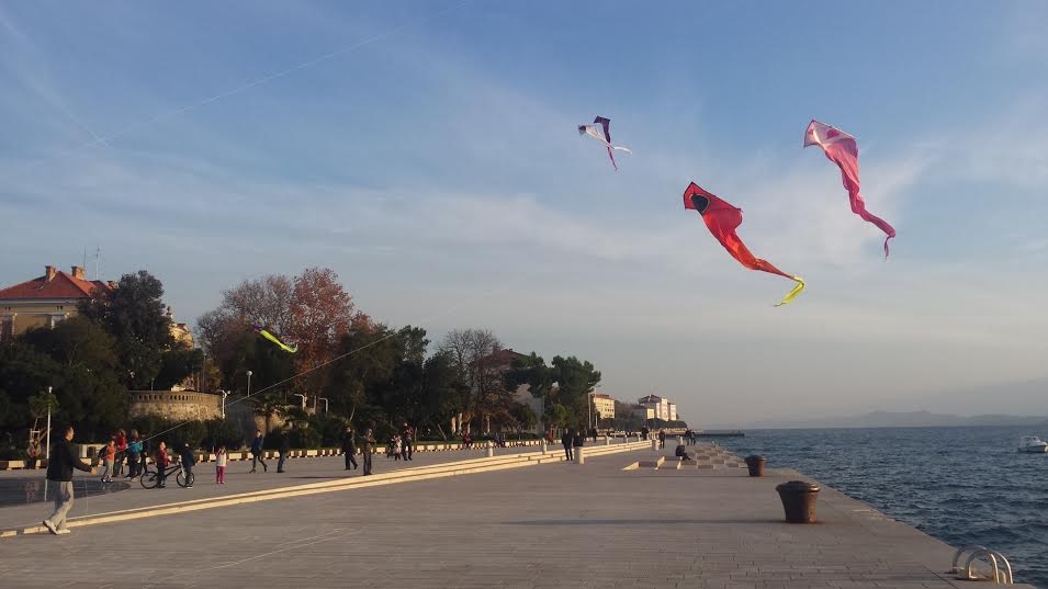 Od 14 sati zmajari Žare, Žuža i Darko koji su jučer izložili svoje zmajeve, danas su ih puštali 100 metara visoko u zrak na rivi, pokraj Pozdrava suncu i Morskih orgulja. Ponosni zmajari čiji su zmajevi zavidnih dimenzija (raspon krila je 3 metra, rep 15 metara) omogućili su i djeci da se okušaju u vještini puštanja zmajeva.