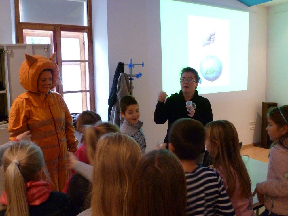Djeca su učila o štetnom utjecaju plastike u okolišu, a potom ih je Eko Maca, lik iz slikovnice/bojanke “Praktični savjeti Eko Mace” kojeg je utjelovila članica udruge “Eko-Zadar” Iva Lukin, podučila gdje se što baca, a posebno što ide u smeđi spremnik za biootpad i kako se pravi kompost.