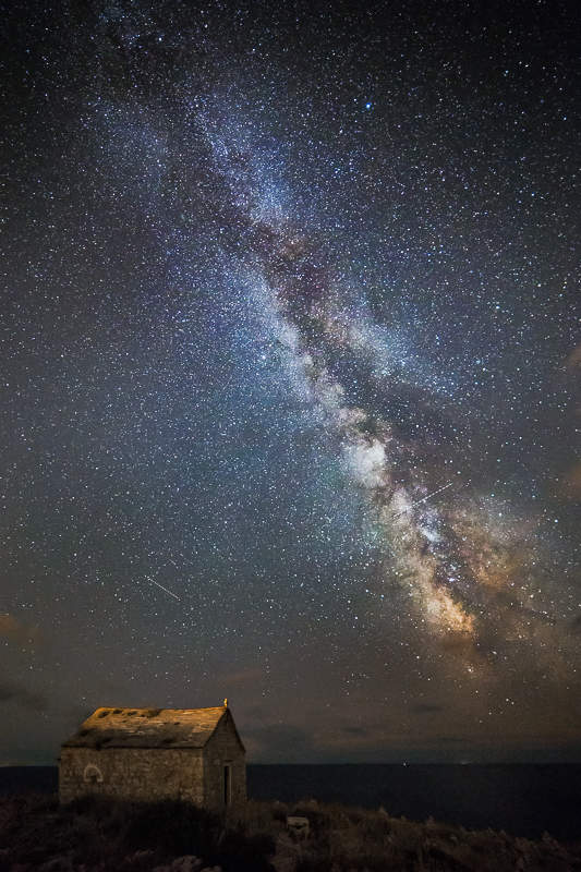 Drugi razlog za odlazak tamo je bio čisto fotografski, a to je zanimljiv “prednji plan” – odnosno u fotografije neba se može lijepo uklopiti kapelicu, stijene ili svjetionik, budući da fotografije zvjezdanog neba dodatno dobivaju na zanimljivosti kada se uklopi neki poznati, ili “zemaljski” motiv. Baš zato mi se Punta Planka činila kao odlična lokacija za noćne fotografije.