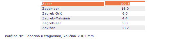 sata palo na meteorološkoj postaji Zadar Puntamika, čak 109,5 litara po
