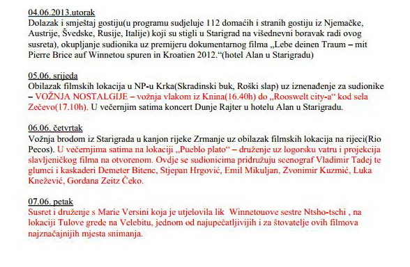 Počasni gosti bit će glumica Marie Versini (Winnetouva sestra Ntscho-tschi), glumica i pjevačica Dunja Rajter te