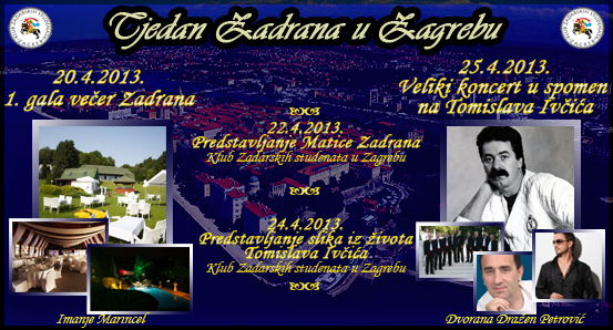 Tjedan Zadrana zaokružit će veliki humanitarni koncert u spomen na Tomislava Ivčića pod nazivom ‘’Večeras je naša fešta” koji će se održati 25.04 u KD ‘’Dražen Petrović”.