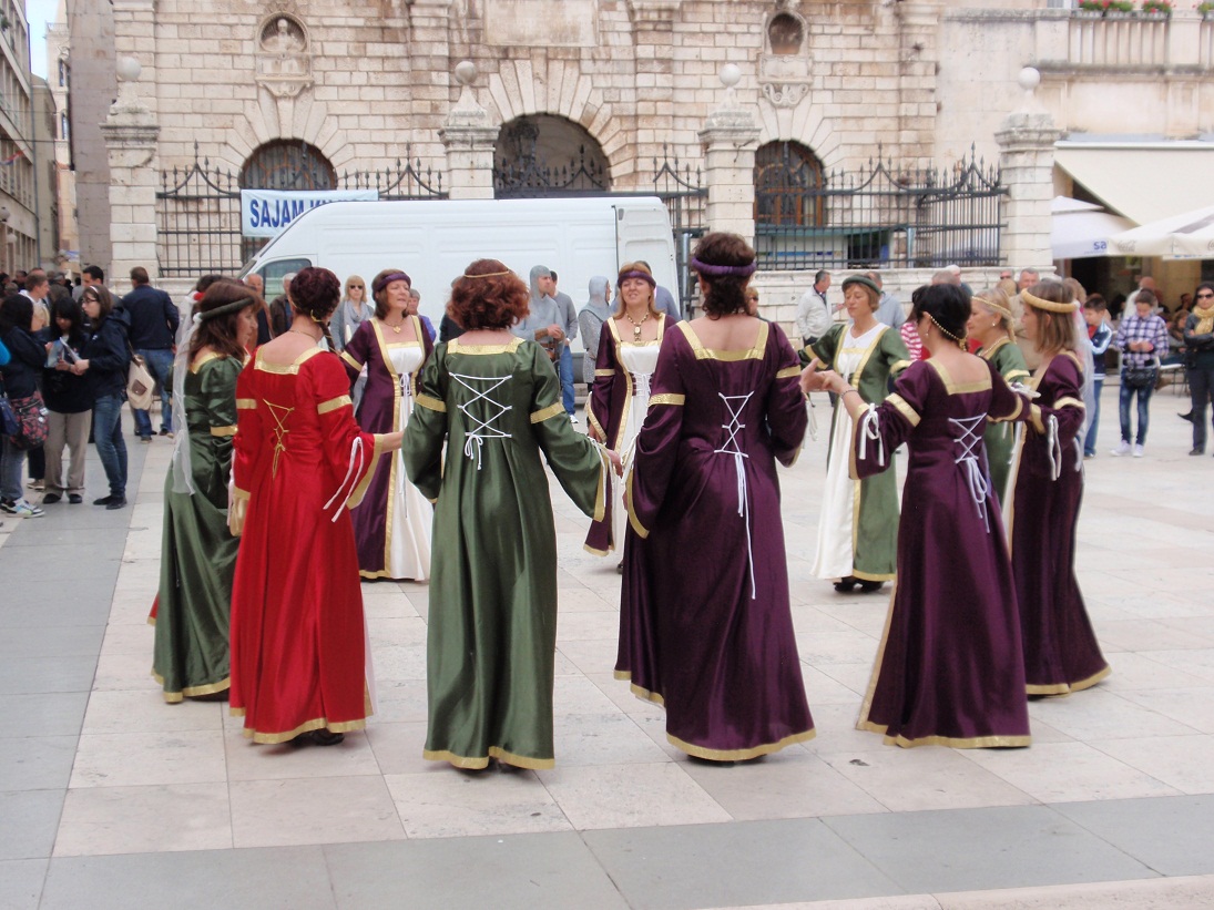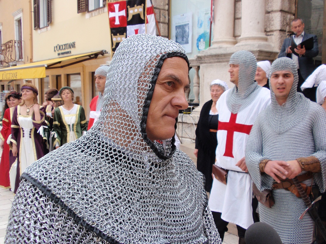 Tako je Udruga Vitezova vranskih jutros na Narodnom trgu u atraktivnom polusatnom programu predstavila svoje vještine. Članovi KUD-a Pakoštane su u posebnim uniformama izveli srednjovjekovni ples, a članovi Udruge Vitezova vranskih prikaz scene mačevanja uz prigodnu riječ o drevnom gradu Vrani. Bio je to svojevrstan poziv Udruge na ovogodišnje Dane vitezova vranskih koji se održavaju svake godine krajem mjeseca kolovoza.