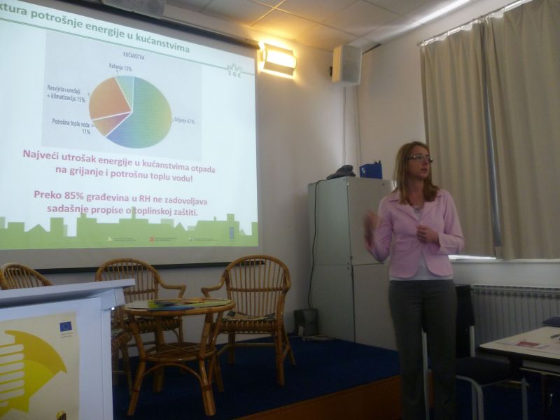 Koliko energije građani uzalud troše stanujući u energetski neefikasnim zgradama ilustrirala je Lana Hudetz iz zadarskog ureda UNDP-a napominjući kako u Info centru za energetsku efikasnost Zadarske županije u Zadru građani mogu besplatno dobiti informacije o tome kako uštedjeti novac koristeći solarnu energiju i druge energetski učinkovite tehnologije.