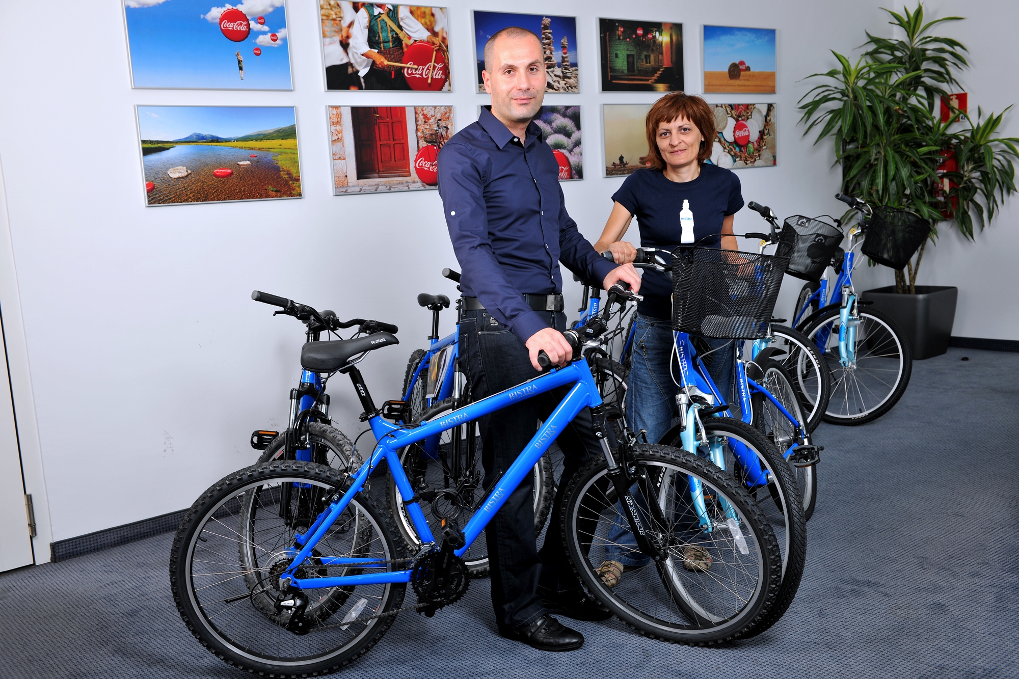 Suradnja u poticanju uporabe bicikla u velikim gradovima traje već osam godina: Darinka Jug iz Udruge Moj bicikl i Igor Ćutuk iz Coca-Cole HBC Hrvatska