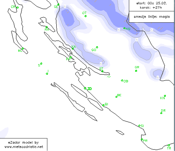 Vremenska prognoza za zadarsko područje, od 25. do 27. veljače