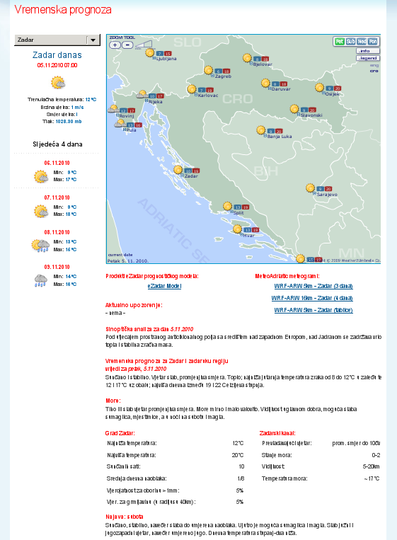 Vremenska prognoza za zadarsko područje, za 6. i 7. studenoga