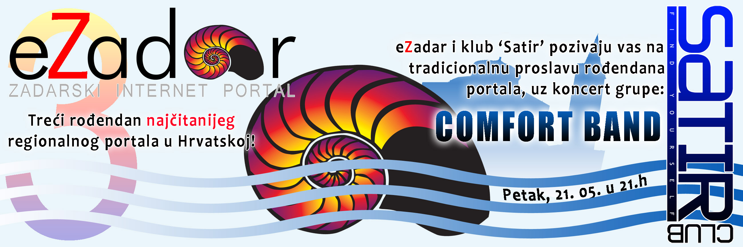 U recesijskoj godini, eZadar će proslavu svog trećeg rođendana učiniti nešto skromnijom, no pristupačnijom za sve građane. Fešta u klubu Satir upriličit će se večeras u 21 sat, uz glazbu mladog zadarskog "Comfort banda", a ulaz za sve posjetitelje bit će slobodan!