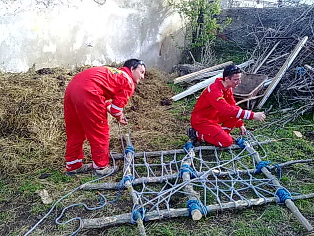 Nakon što su napravili improvizirana nosila, dovoljno jaka da podnesu veliki teret, spašavatelji su uz pomoć mještana kravu spustili do staje gdje ju je dočeklo njezino tele i vlasnica
