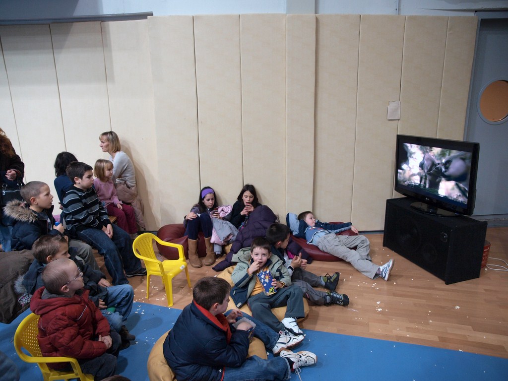 Dino-kino zvuči atraktivno, a zapravo se radi o kutku u kojem se vrti DVD-projekcija, a djeca se s kokicama mogu smjestiti pred ekran, no zbog žamora ne mogu čuti o čemu se govori.