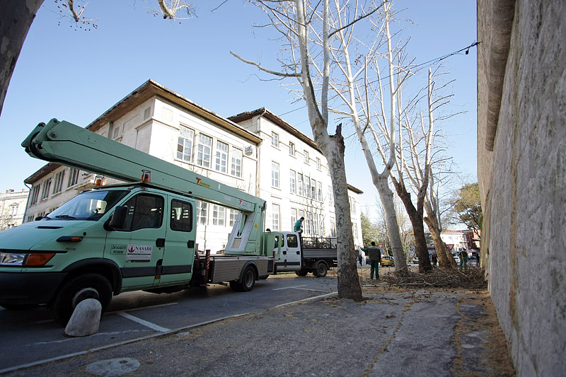 Jutros nije bilo toliko problema kao prošli tjedan, jer su vozači uglavnom poštovali znakove upozorenja o zabrani parkiranja i prije jutrošnjeg početka radova tek su rijetki ostavili svoja vozila na parkingu uz staru Tehničku gdje je počela sječa grana na drvoredu uz bedem parka na Trgu 5 bunara.