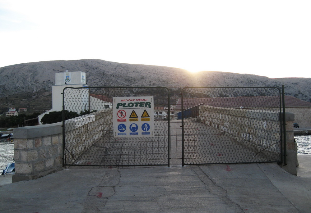 Četiri dana pred svečano otvaranje radova na obnovi starog mosta u Pagu, djelatnici tvrtke “Ploter” iz Zadra počeli su s osiguranjem budućeg gradilišta.