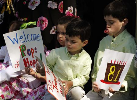 Benediktu XVI., kojemu je danas 81. rođendan, priređen je najsvečaniji doček u povijesti Bijele kuće, uz fanfare, intoniranje himni SAD-a i Vatikana, počasni plotun iz 21 topa, glazbu vojnog orkestra u kolonijalnim odorama i čestitku
