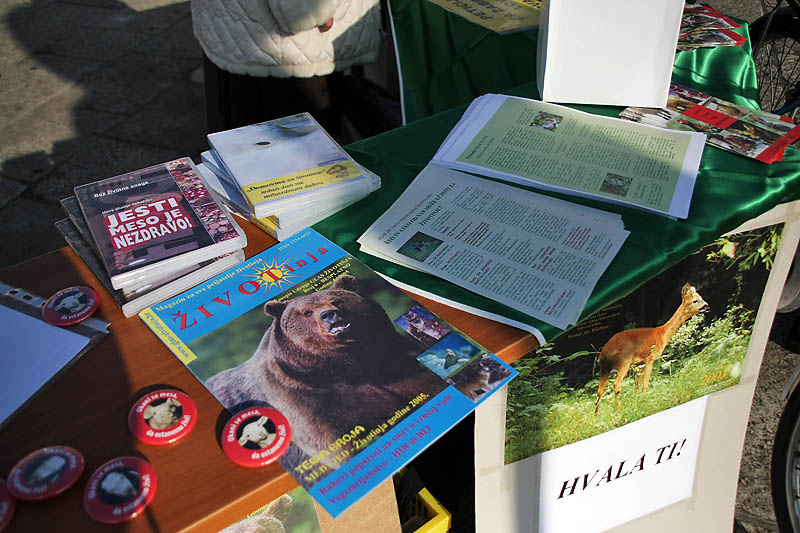Zadranima si na info pultu udruge bili dostupni informativni materijali “Osam lovačkih laži – lovci nam nisu potrebni”, “Priroda se brine za sve… kada je čovjek ne ometa” i “Što svatko od nas može učiniti za životinje'”