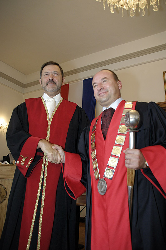 Nakon govora, odstupajući rektor Magaš uručio je rektorski lanac i žezlo novom rektoru i još predao zahvalnice prorektorima zadarskog Sveučilišta.