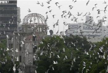 U govoru koji je uslijedio nakon puštanja u zrak 1.000 bijelih golubova, Akiba je optužio Sjedinjene Države što nisu zaustavile širenje nuklearnog oružja.