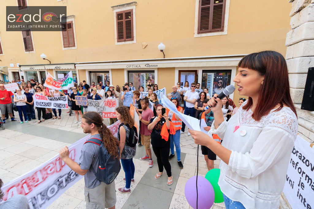 Nekoliko stotina građana se okupilo i na Narodnom trgu u Zadru koji su uz glasno zviždanje pokazali svoje nezadovoljstvo. Nezadovoljstvo kroz govore, pjesme i poeziju iskazali su i studenti, organizatori te pozvani gosti koji su još jednom iznijeli zahtjeve za obrazovnom reformom te su se usprotivili politikama koje podržavaju plagijate i prepisane kurikularne akcijske planove.