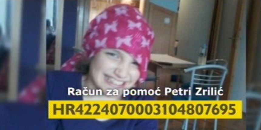 Zadarska učenica, 12-godišnja Petra Zrilić već šest godina boluje od malignog neuroblastoma nadbubrežne žlijezde. Kako na dosad provedene terapije nije dobro reagirala, potrebna joj je financijska pomoć za liječenje u inozemstvu.