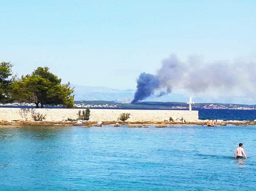 Oko 15.00 na potezu između Kožina i Dikla rasplamsao se veliki šumski požar čiji je crni dim prekrio nebo i vidi se iz cijelog Zadra ali i s otoka.
