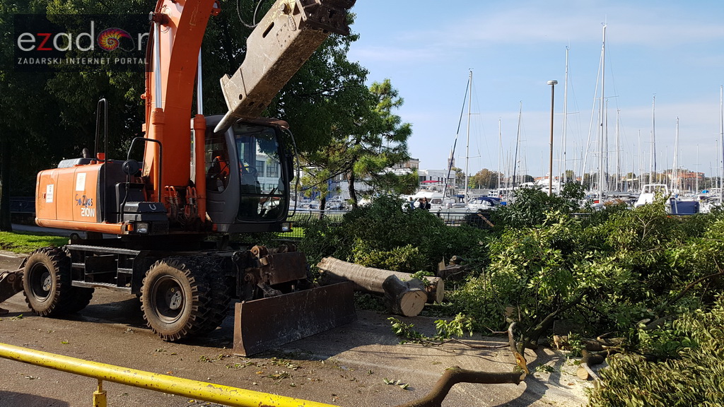 Na gradilištu su danas oko 11 sati bilo aktivno nekoliko djelatnika i jedan bager na rušenju i pilanju stabala fafarikule, protiv čega je Udruga Eko Zadar u utorak digla zadarsku javnost na noge.