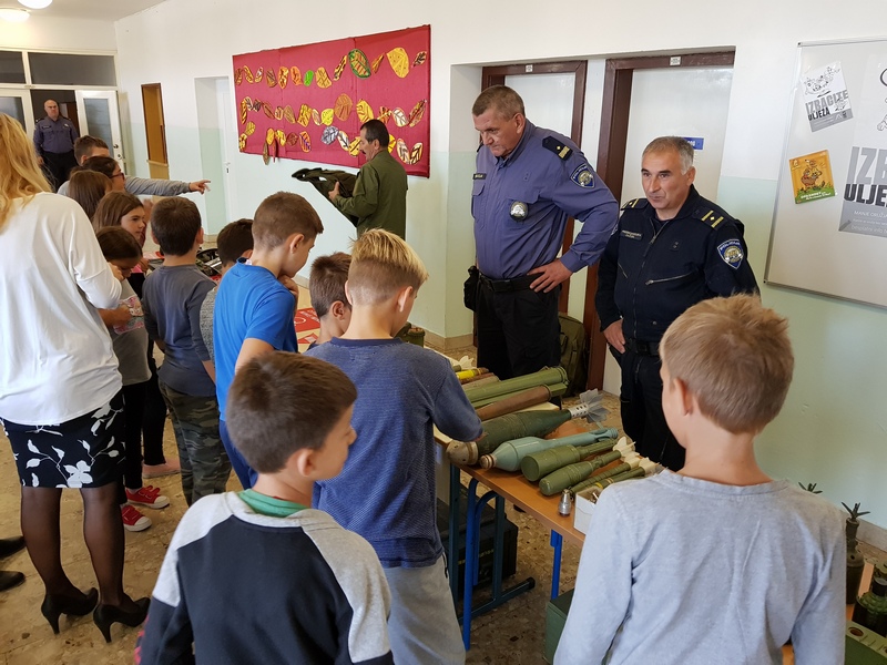 Na kraju programa, u predvorju škole svoje su aktivnosti i opremu predstavili i djelatnici Hrvatskog centra za razminiranje, Podružnice Zadar, koji su zajedno s policijskim službenicima za protueksplozijsku zaštitu Policijske uprave zadarske informirali djecu i građane o opasnostima od zaostalih minsko-eksplozivnih sredstava kako bi se što veći broj ljudi senzibilizirao o ovoj problematici.
