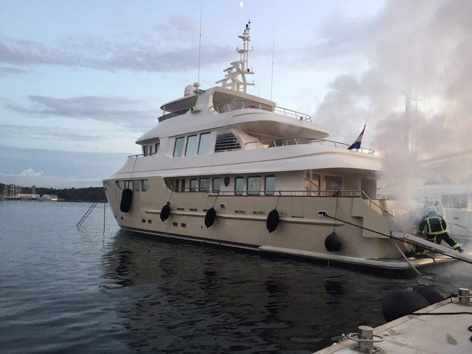 Požar je ugašen u 18.40 sati, nakon čega su službenici LK Šibenik u okviru očevida o uzrocima ove teže pomorske nezgode pregledali opožarenu jahtu i utvrdili da je vatra izbila u predjelu strojarnice odakle se proširila krmenim dijelom motorne jahte “Eternity”, dužine 28,8 metara, hrvatske zastave, dok je boravila na vezu. U nezgodi nema ozlijeđenih, no nastalo je manje onečišćenje mora koje su pripadnici JVP Šibenik lokalizirali plutajučim branama na poziciji.