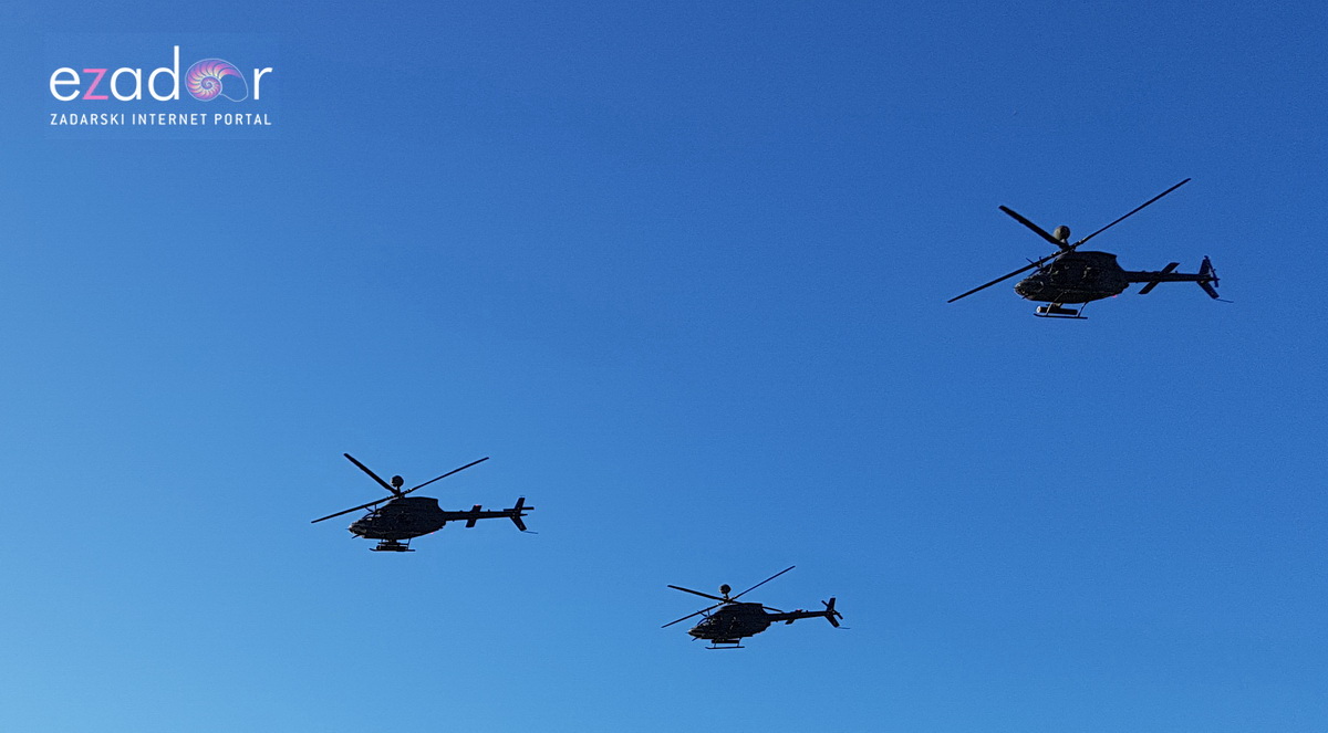 U vrijeme dok je mimohod ratnih postrojbi sa 188 zastava prelazio Gradski most u Zadru iznad tog mosta su svečani prelet obavila tri helikoptera Kiowa Warrior.
