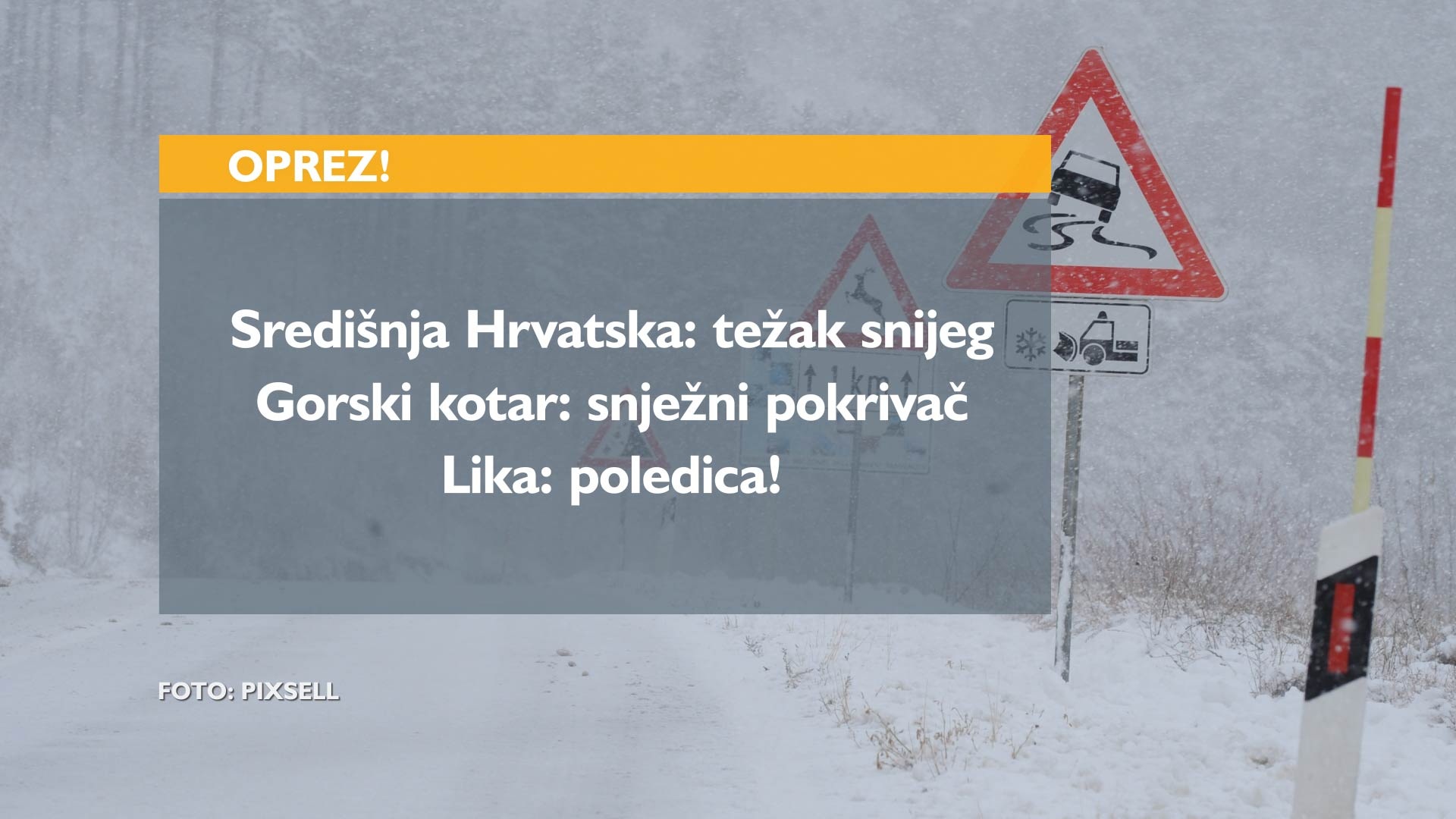 Petak će u unutrašnjosti biti većinom oblačan i kišovit, a izuzetak će biti samo djelomice sunčana Slavonija. Kiša će u gorskoj i velikom dijelu nizinske Hrvatske polako prelaziti u snijeg. Već do podneva, susnježice i mokroga snijega bit će u Međimurju, velikom dijelu Zagorja, na zapadnom zagrebačkom području i u dijelu Gorskoga kotara. Do večeri, mokar će snijeg padati u cijeloj središnjoj Hrvatskoj, a snježni pokrivač kojega će stvarati će još uvijek biti prilično mokar. U Gorskome kotaru u drugom dijelu petka već će se loviti pa će do kraja dana stvoriti i 20 do 50 centimetara novog snježnog pokrivača. U Lici malo kompliciranija priča. I ondje će tijekom petka kiša prelaziti u čvrste oborine, ali najprije će to biti neka prijelazna vrsta, najvjerojatnije ledena zrnca. Štoviše, na području od Gračaca do Plitvica mogu se te miješane oborine prolazno i smrzavati na tlu. Stoga, ako vozite noćas, imajte na umu da će vožnja kroz taj dio zemlje biti opasna i da, osim na snijeg, treba pripaziti i na poledicu.