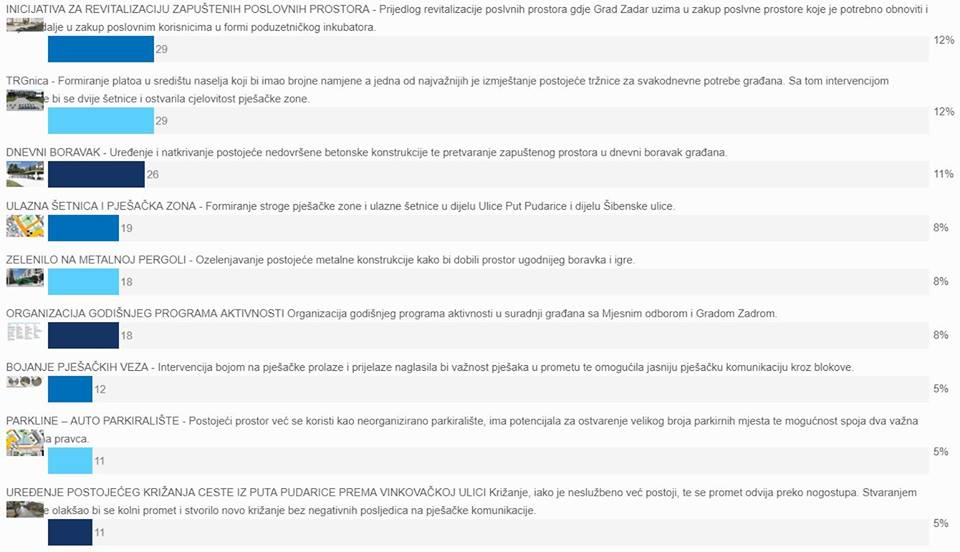 Zaključena je anketa za građane kojima se u sklopu "Gradionice" zadarskih arhitekata biralo najbolja rješenja za unaprijeđenje kvarta Bili Brig. Donosimo rezultate.