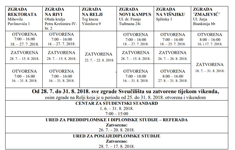 Kako će u srpnju i kolovozu raditi Sveučilište u Zadru?